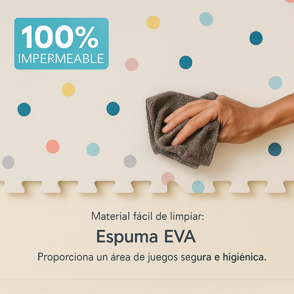 Material de Calidad: Fabricado en goma Eva, este piso es resistente y fácil de limpiar, garantizando una superficie segura y cómoda para jugar.