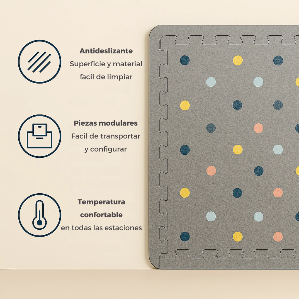 Encastrable y Antideslizante: Sus piezas encastrables permiten una fácil instalación y su superficie antideslizante brinda mayor seguridad durante el juego.