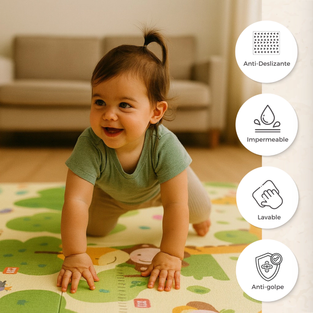Aísla el frío del piso dando una temperatura confortable al bebé. Protege las rodillas, la columna vertebral, las caderas y los codos del bebé en el piso duro, y también protege el piso contra daños. Fácil de limpiar con un paño húmedo