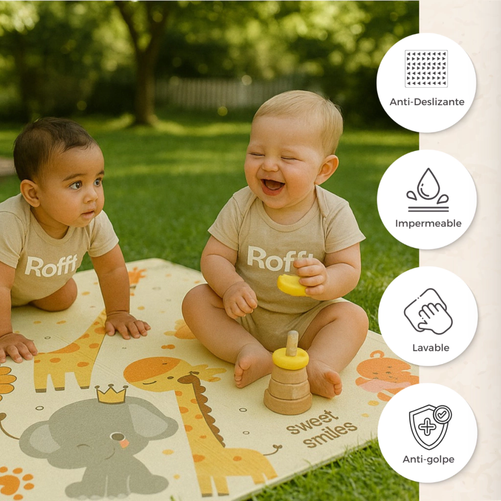 Aísla el frío del piso dando una temperatura confortable al bebé. Protege las rodillas, la columna vertebral, las caderas y los codos del bebé en el piso duro, y también protege el piso contra daños. Fácil de limpiar con un paño húmedo