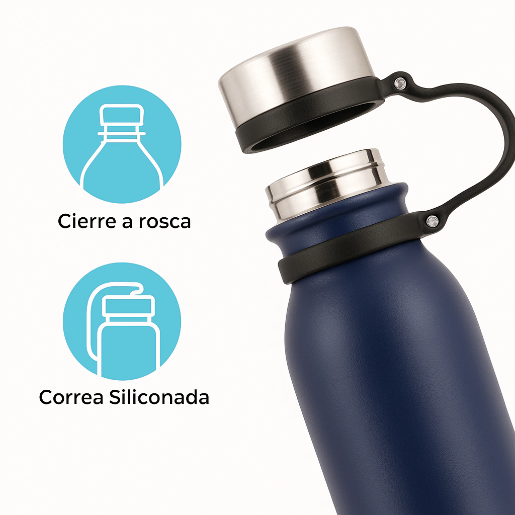 Materiales de Alta Calidad: Fabricada en acero inoxidable SS304, es libre de BPA y cuenta con una tapa a rosca con burlete de silicona que evita cualquier derrame.