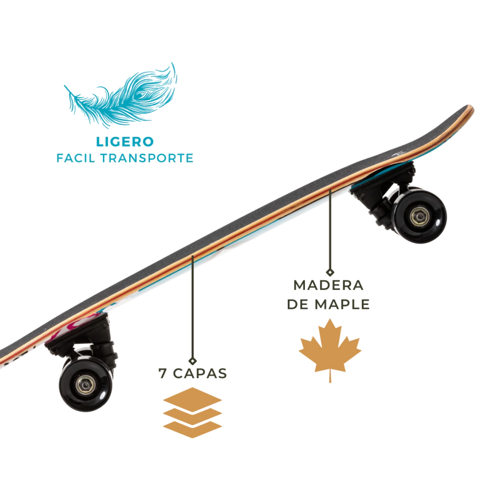 Esta longboard no solo es un medio de transporte, sino también una forma de expresión y diversión. Su diseño unisex la hace perfecta para cualquier persona, ya sea para desplazamientos diarios o para disfrutar de un día de skate con amigos.