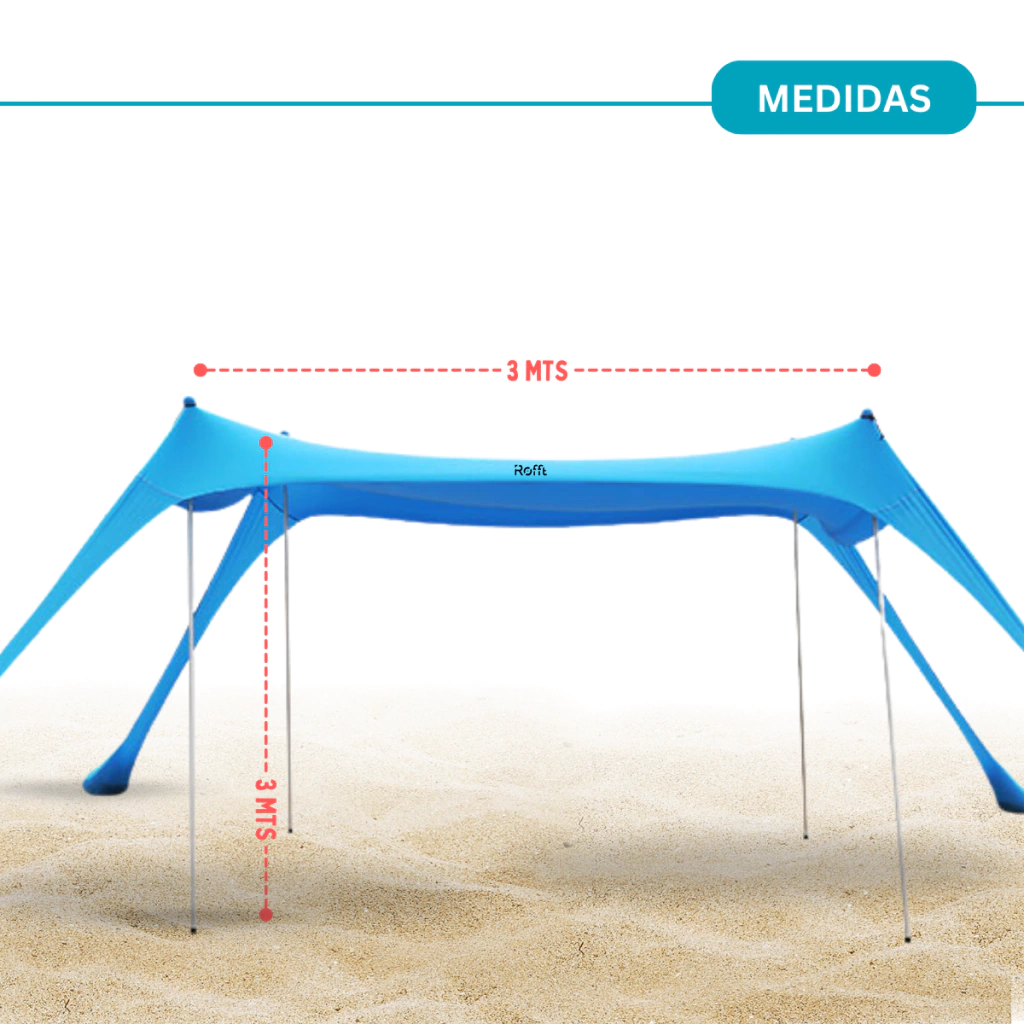 Estabilidad Aumentada: Incluye 4 bolsas de anclaje que pueden llenarse con arena o rocas, asegurando que se mantenga firme incluso en condiciones de viento fuerte.